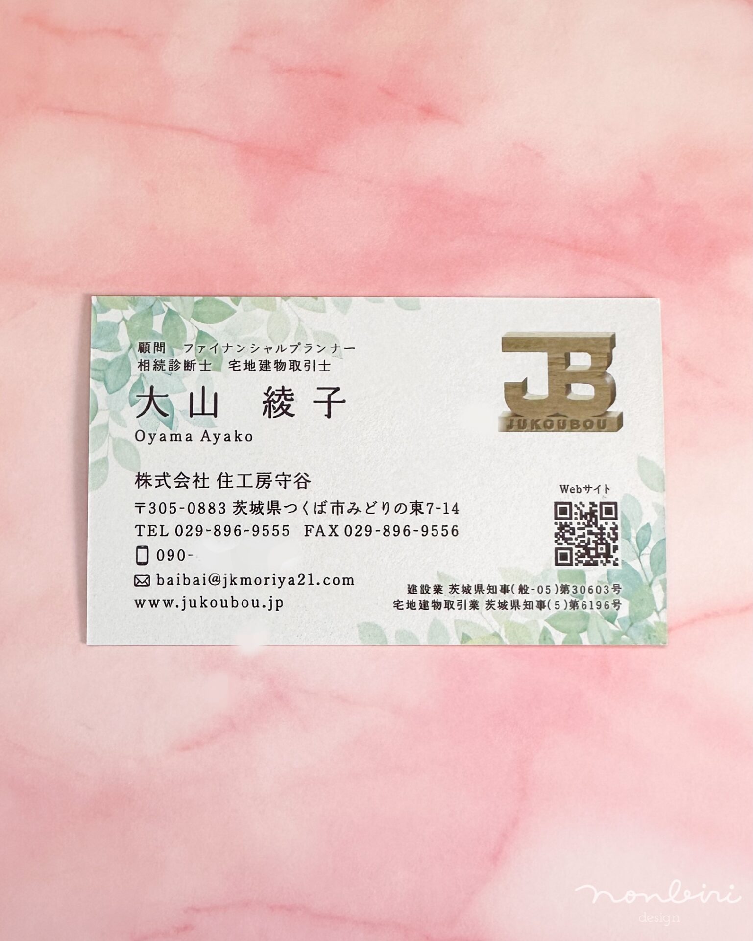 茨城県つくば市の、オフィス綾&住工房守谷の大山綾子さまの名刺を制作しました。