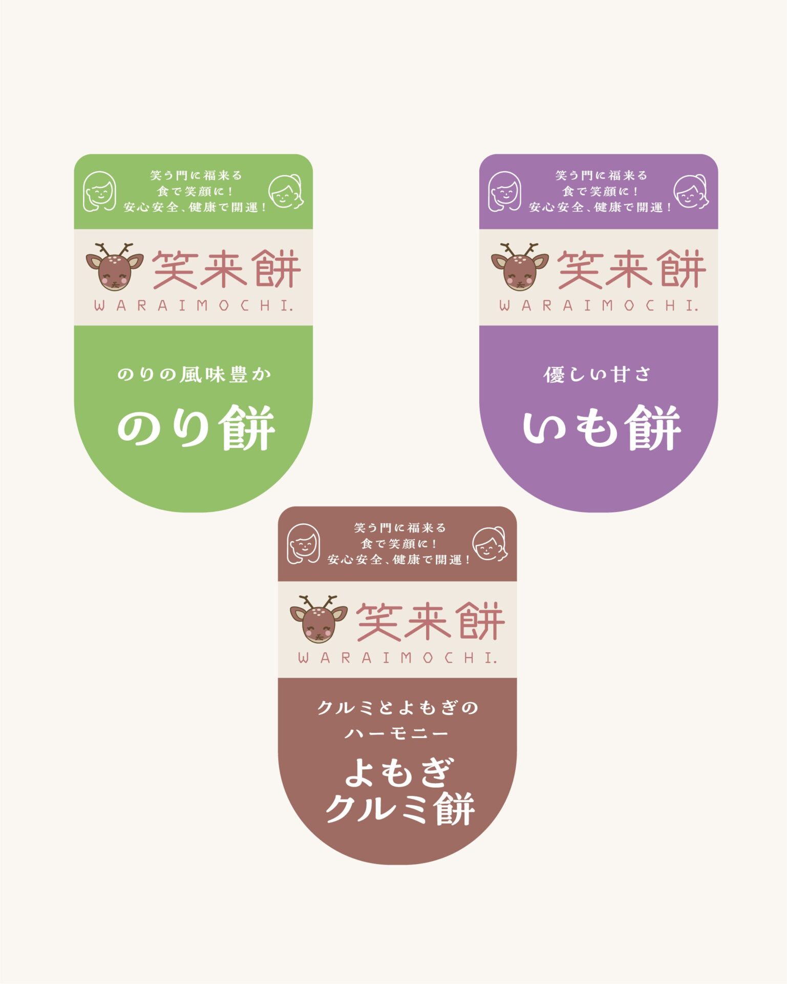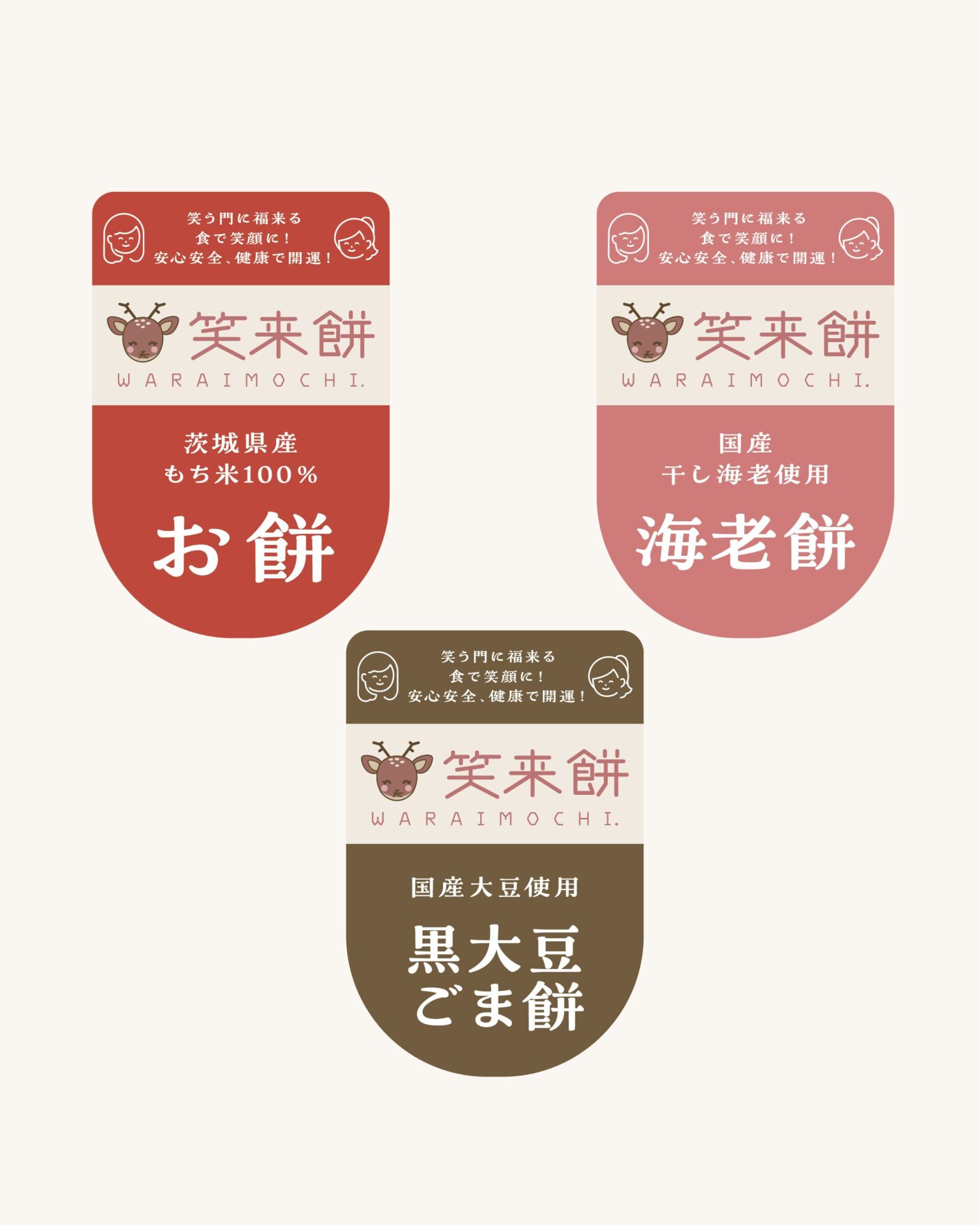 茨城県筑西市の笑来餅(わらいも)様の、お餅のラベルを制作いたしました。