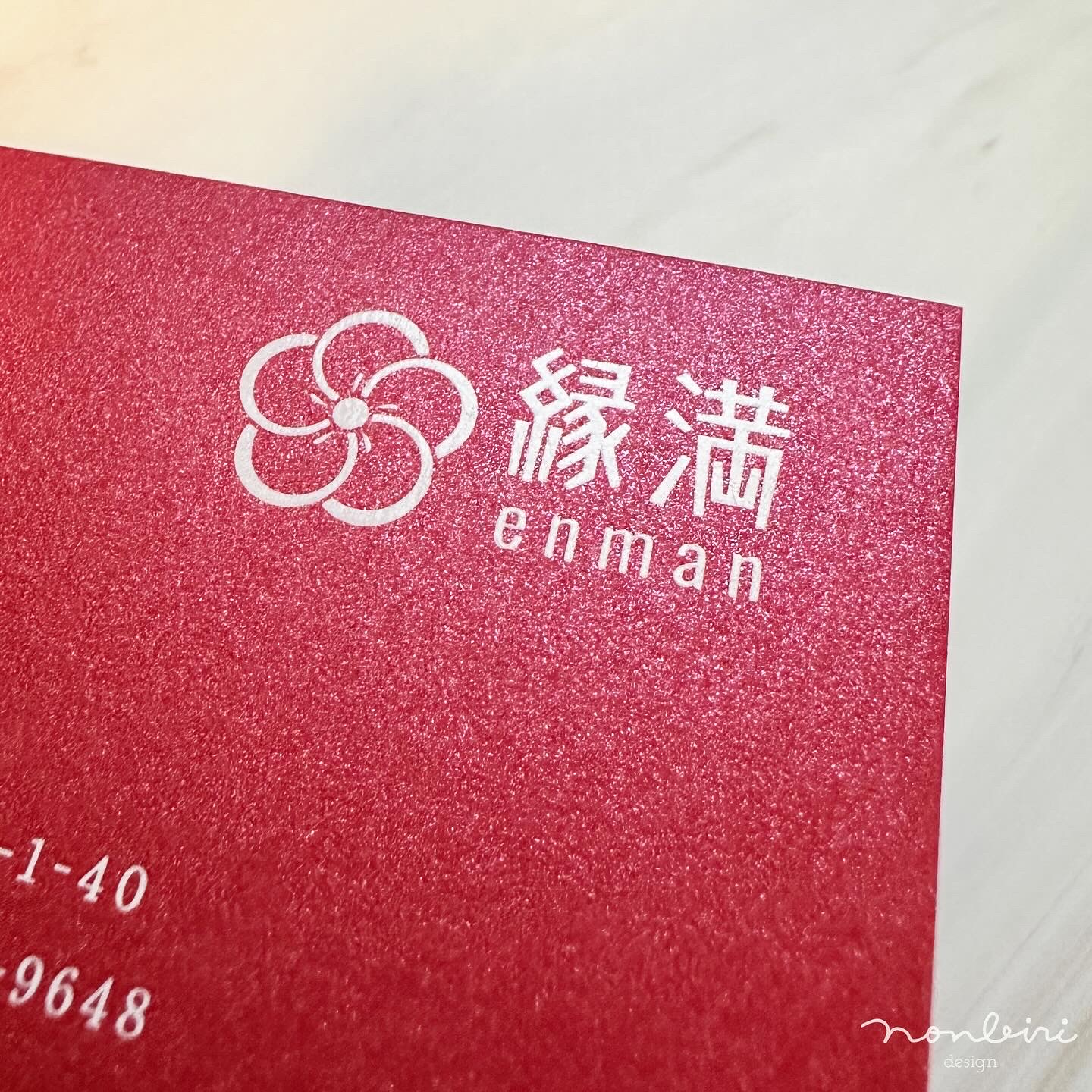 つくば市の縁満さまの名刺を制作いたしました。 水回り関係のお仕事をされているのですが、どんなお仕事かわからないような珍しくて他と差がつく名刺が良いとのことで、スタードリームという赤いラメの用紙に白インクの印刷で、木村様がお好きな花であるというトルコキキョウをモチーフにデザインしました。